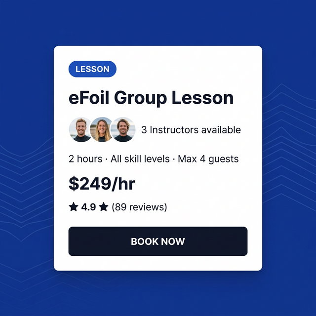 "Found my first eFoil lesson in minutes. The instructor was amazing, and I was flying within an hour!"