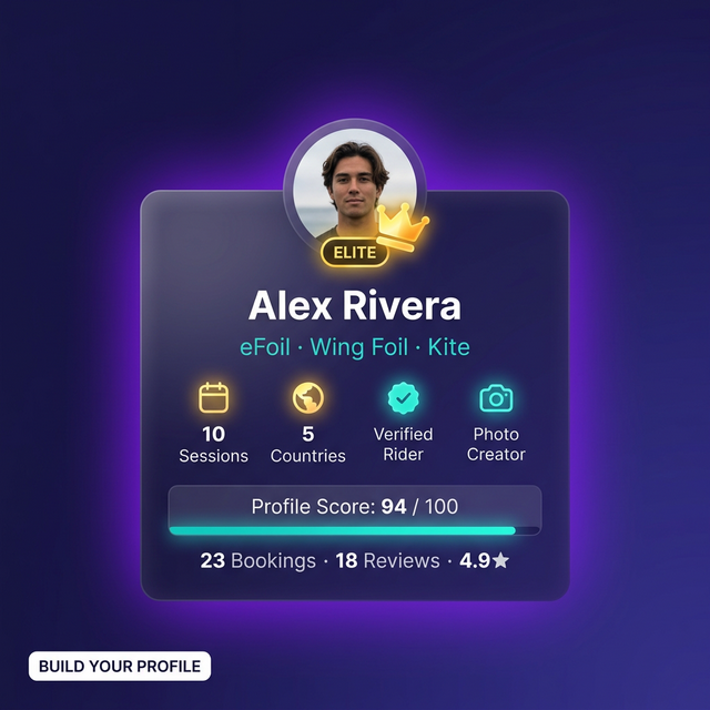 The easiest way to discover, book, and experience water sports. Whether you're learning eFoiling, kiteboarding, surfing, wing foiling, or teaching - we've got you covered.